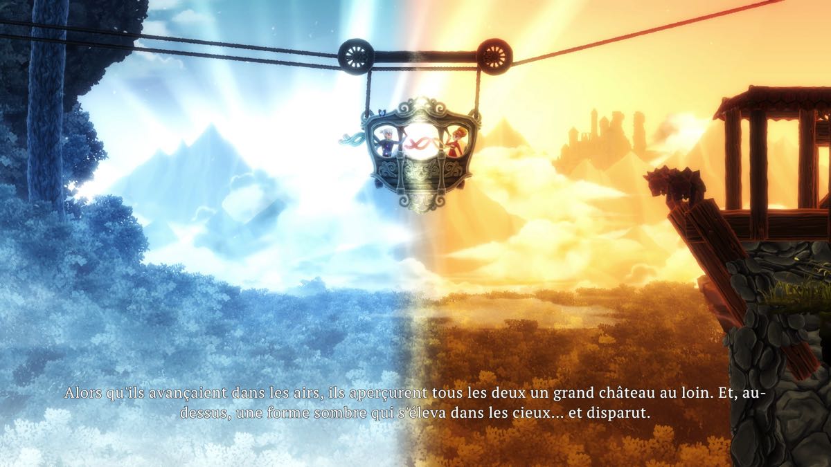 Avant de me lancer dans l’histoire de cet excellent jeu, je tiens à signaler qu’il se joue aussi bien seul ou à deux. Si vous jouez seul, vous contrôlez les deux personnages en passant de l’un à l’autre en utilisant la touche Q et la touche F pour appeler l’autre personnage quand il a arrêté de vous suivre. Si vous jouez à deux, ça peut être en ligne ou en local avec un écran partagé.