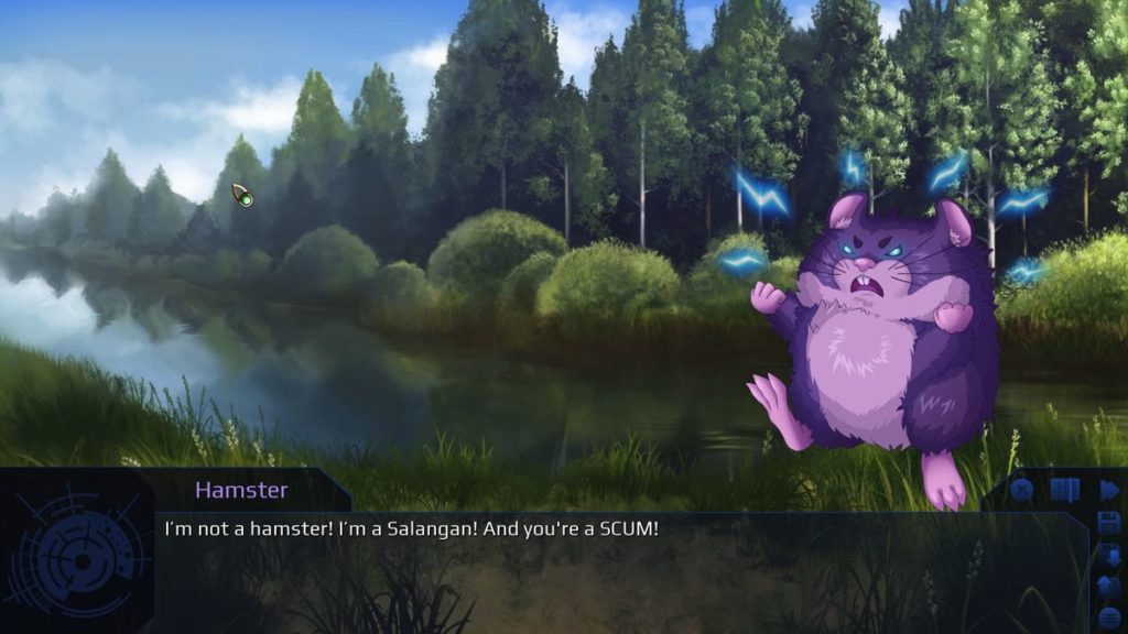 Race évoluée ? Dieux ? Oui, un dieu en hibernation depuis plusieurs millénaires ressemblant à un hamster violet et s’appelant Humkey. Pour faire court et pas forcément dans l’ordre, vous vous embrouillez un peu avec lui, vous découvrez que vous êtes le seul à le voir… et vous vous évanouissez à nouveau (pauvre fillette !).