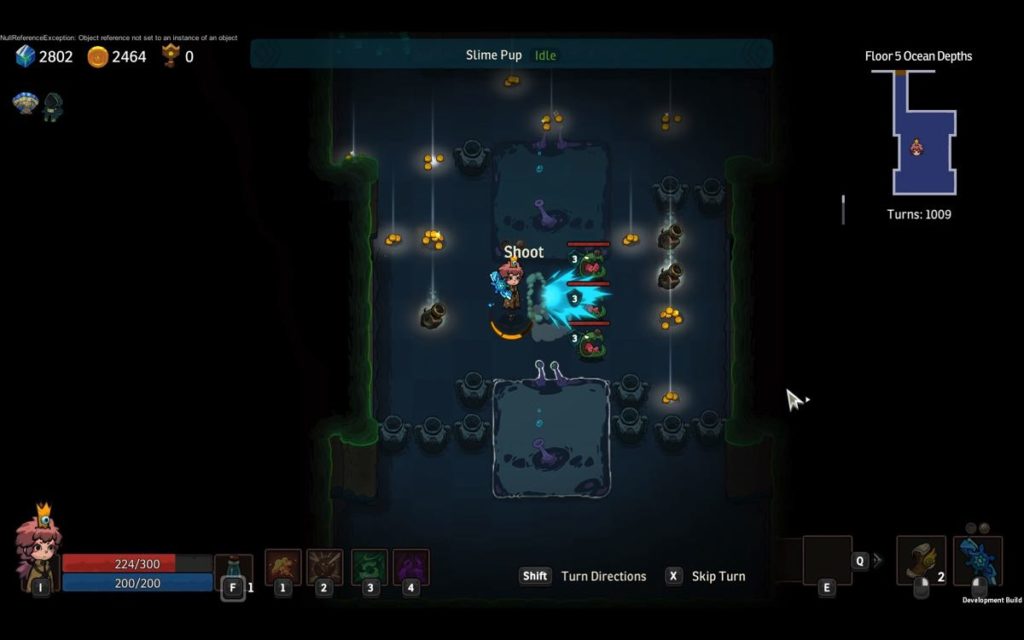 Crown Trick se déroule au tour par tour, vous bougez, c’est un tour, vous frappez, c’est un tour aussi, vous vous téléportez, c’est la même chose. Des fois, pour garder l’initiative et frapper au bon moment, il faut rester immobile en passant son tour, ce qui est possible (X).