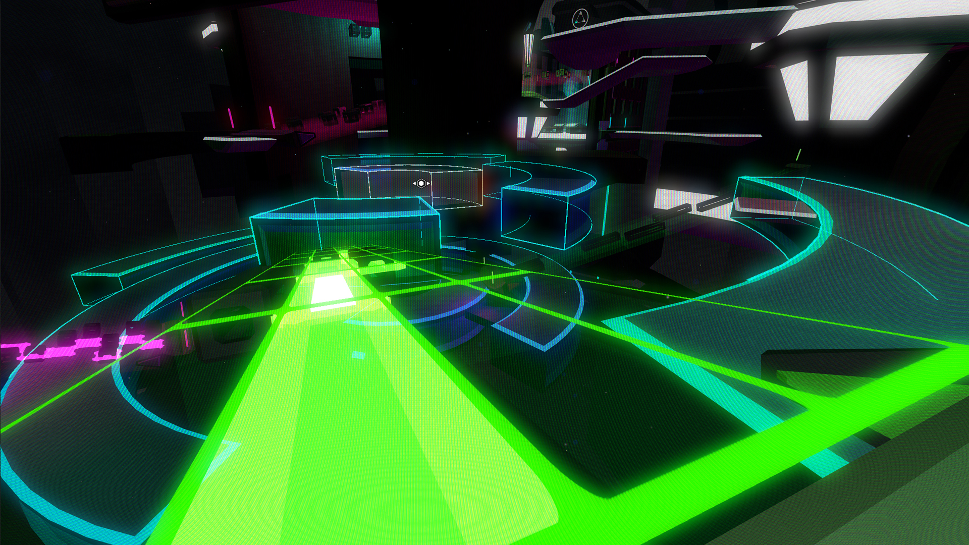 A un moment, nous pensions avoir quatre mondes au complet, chacun se concentrant sur un outil dans la création de la musique électronique – un monde de « drum machine », synthétiseur, « sampling » et « turntable ». Finalement, nous nous sommes concentrés sur le synth, c’est la raison pour laquelle le jeu s’appelle « FRACT OSC » – le « OSC » signifie oscillateur !