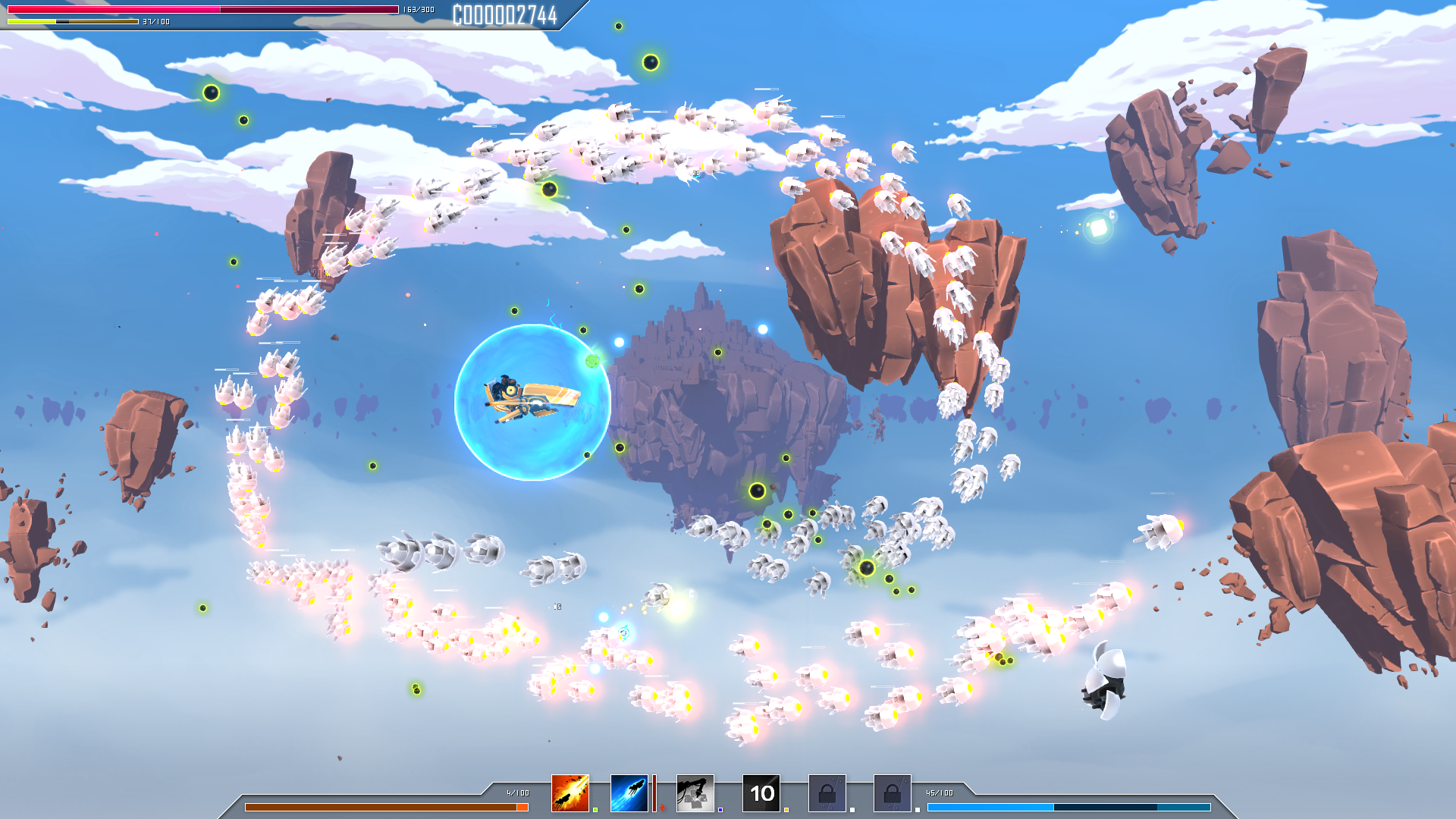 Drifting Lands est un jeu mélangeant deux genres, le combat contre d’autres vaisseaux spatiaux sous la forme d’un jeu de tir à défilement horizontal et le combat avec l’utilisation de talents (que l’on appelle aussi pouvoirs dans certains jeux).