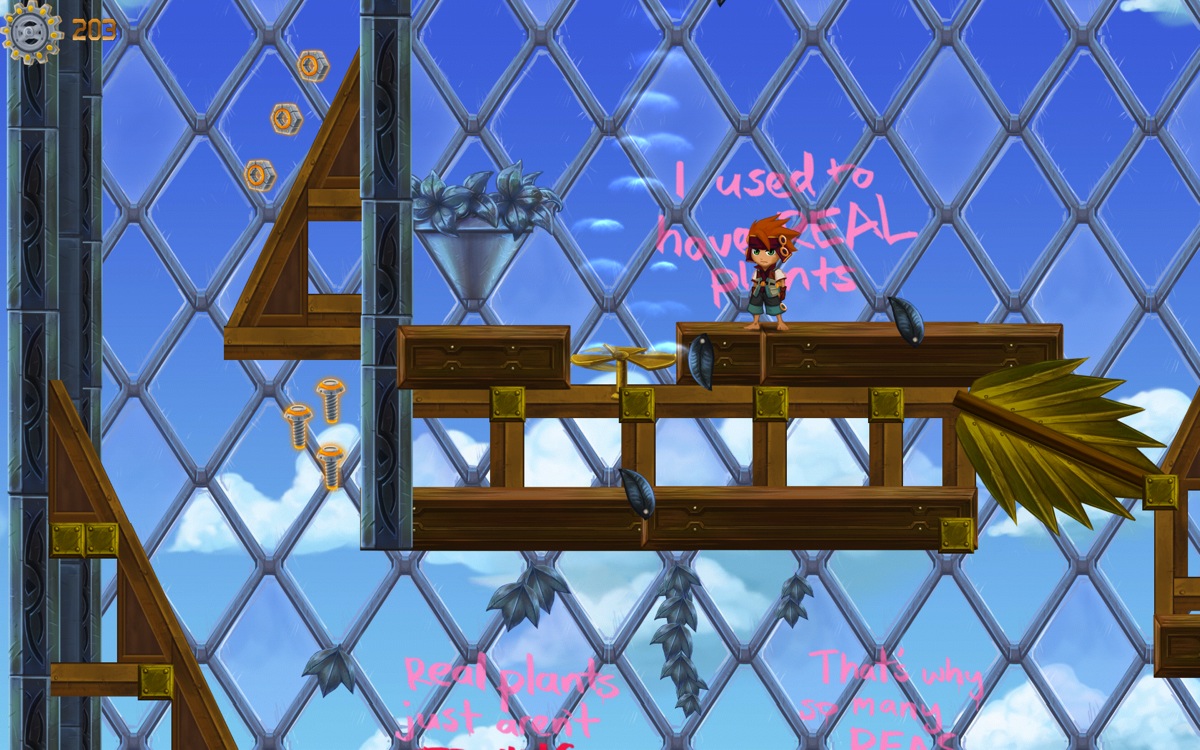 Il y a plusieurs niveaux de difficultés (heureusement) et avec le niveau simple, j’ai eu beaucoup de difficultés. Mais bon, je suis très mauvais dans ce style de jeu. Je préfère regarder une personne jouer à un bon jeu de plateformes.