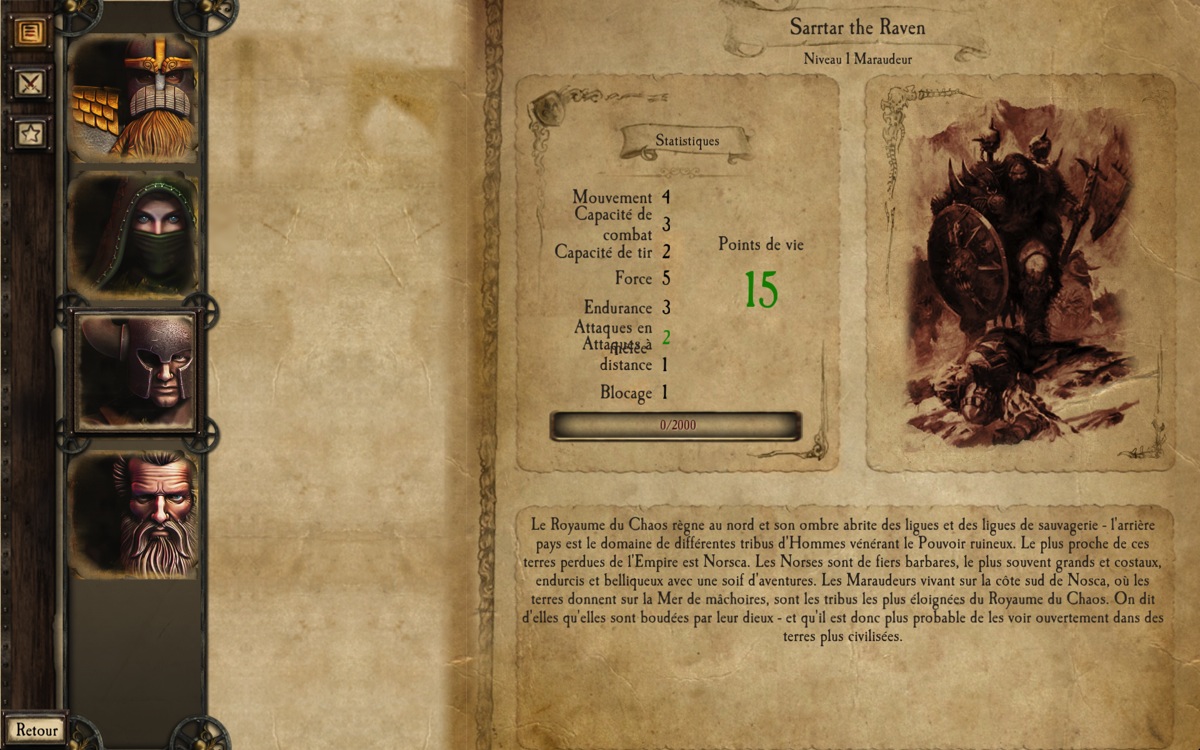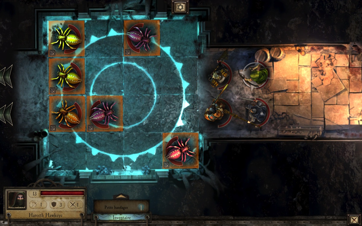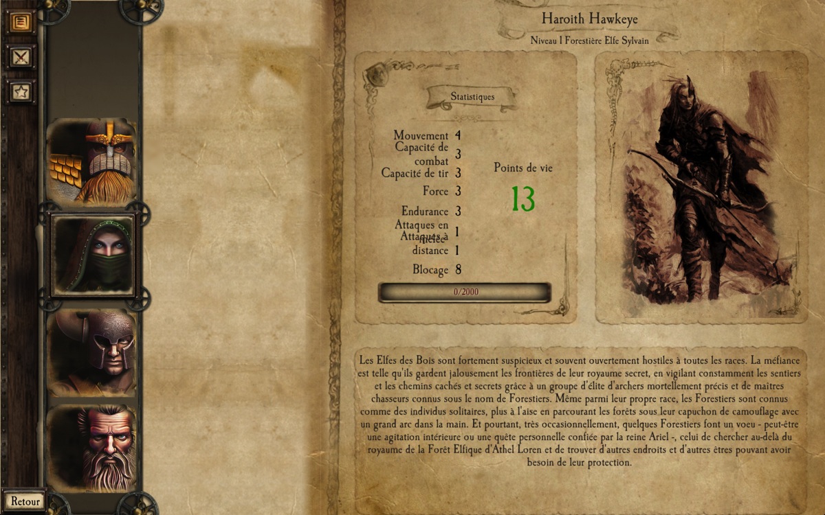 Pour revenir aux personnages, le sorcier est un peu boulet au début, par contre, dès qu’il passe au niveau 2, il devient plus intéressant. Il a plus de points de magie chaque tour donc peut lancer des sorts plus puissants et surtout, il possède une réserve de points qu’il peut utiliser en urgence. Cette réserve se recharge hors quête.