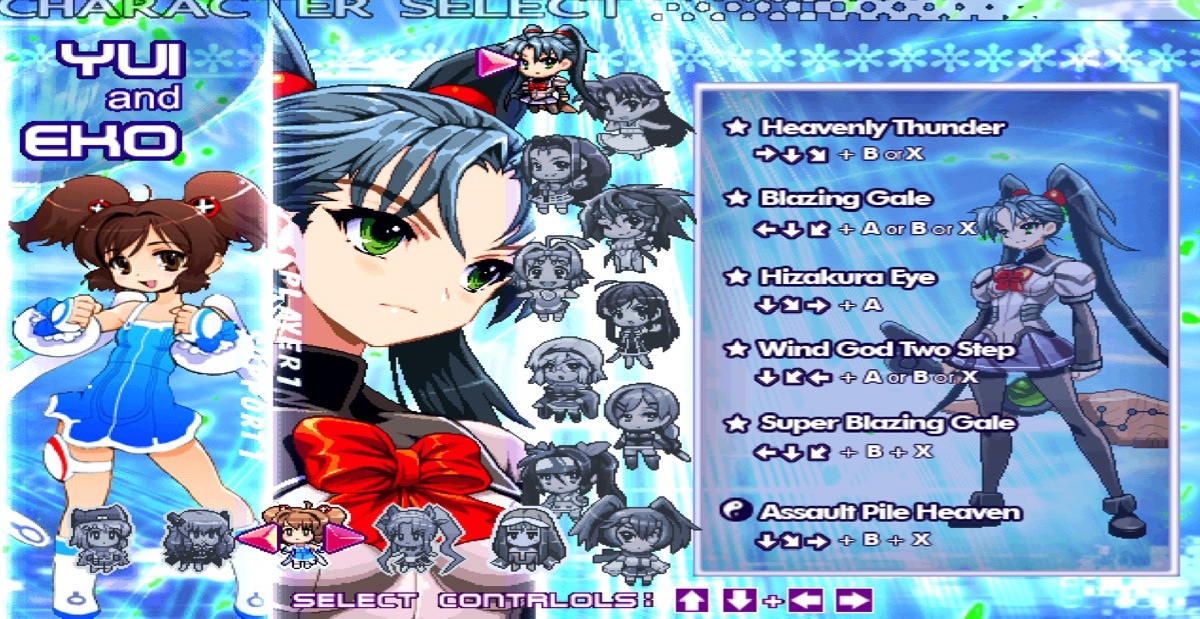 Pour la combattante principale, je vous recommande avant de commencer un combat de redéfinir les touches sur le clavier, elles sont loin d’être intuitive. Les 10 « Vanguard Princess » sont : Yui, Haruka, Lilth, Luna, Kurumi, Saki, Kaede, Natalia, Eri, Ayane