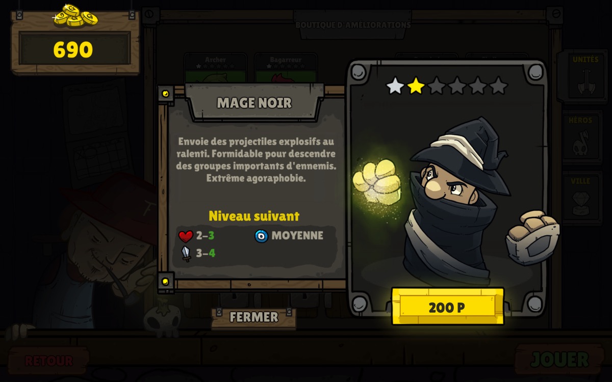 - les combattants – vous améliorez leur niveau pour les rendre plus résistants et plus forts
