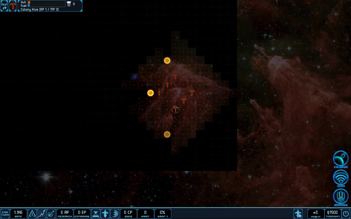 - la colonisation de nouvelles planètes – vous commencez avec trois colonisateurs, il faudra trouver la technologie pour ces vaisseaux et en construire pour vous répandre sur les planètes