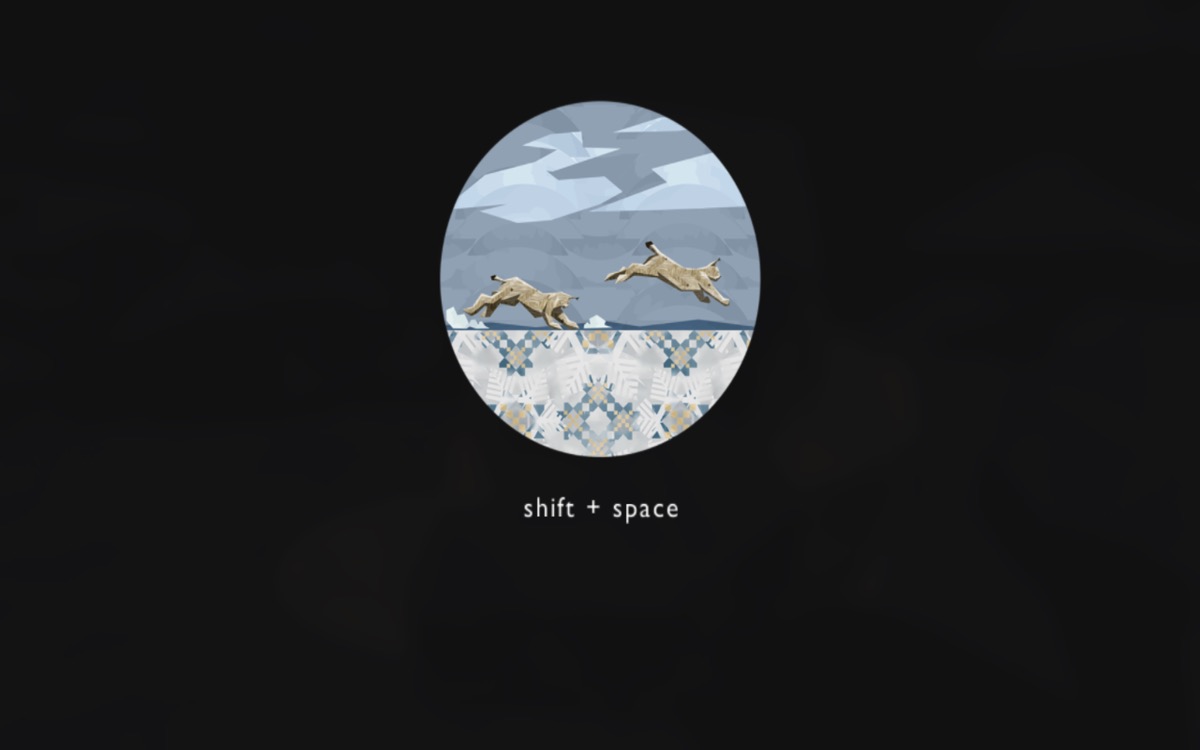 C’est la nuit. Maman lynx arrive est poursuivie par des loups. Elle saute sur une plateforme en hauteur, suit un chemin que les étoiles lui tracent et arrive dans un grotte surplombée par un immense sapin.