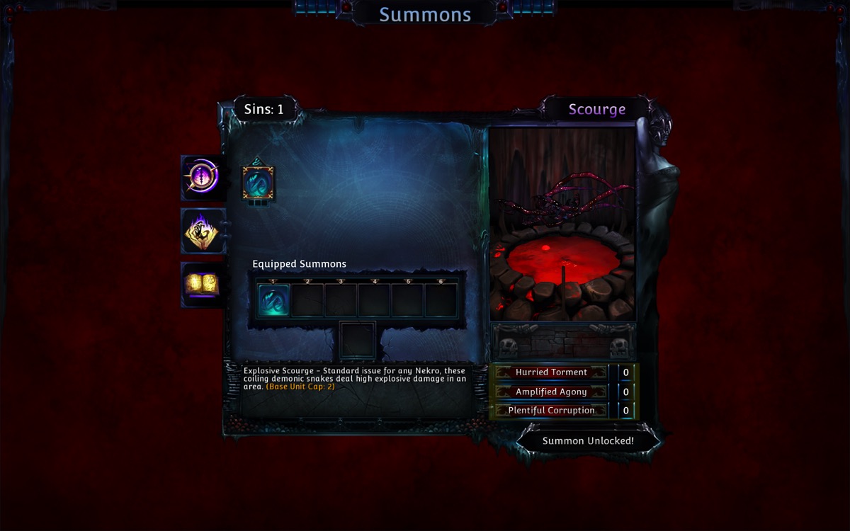 Les péchés sont des sorts que vous pouvez utiliser tout le long de la partie. A chaque montée de niveau, vous avez un point qui vous permet d’améliorer certains éléments de vos péchés.