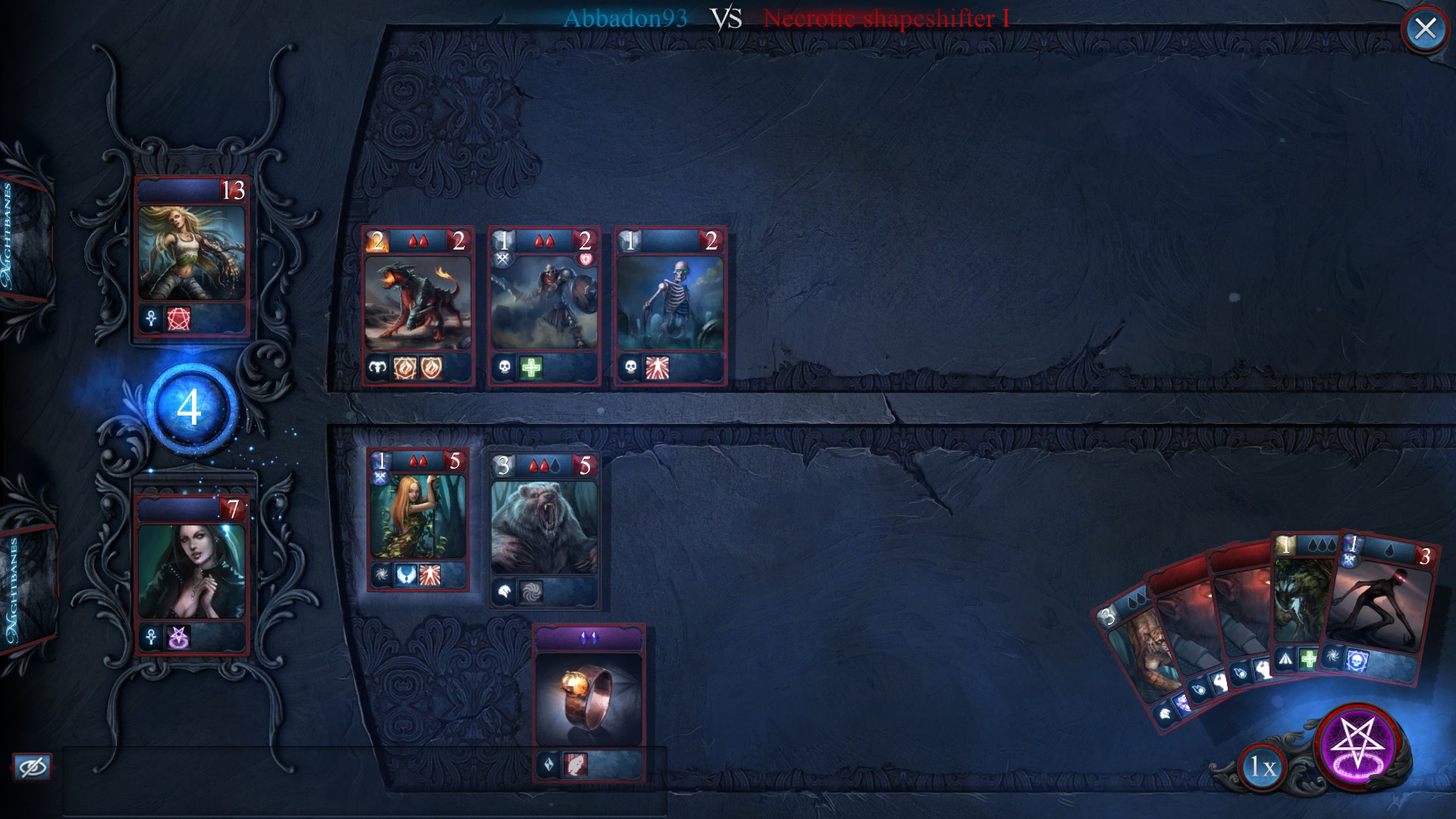 Nightbanes propose de jouer contre l’ordinateur ou contre d’autres joueurs. Je n’ai pas encore essayé le JcJ (ou PvP si vous préférez la version anglaise), je ne peux donc pas vous dire comment ça se passe. J’espère juste qu’il y a des filtres qui empêchent les joueurs ayant un fort niveau de combattre avec les débutants !