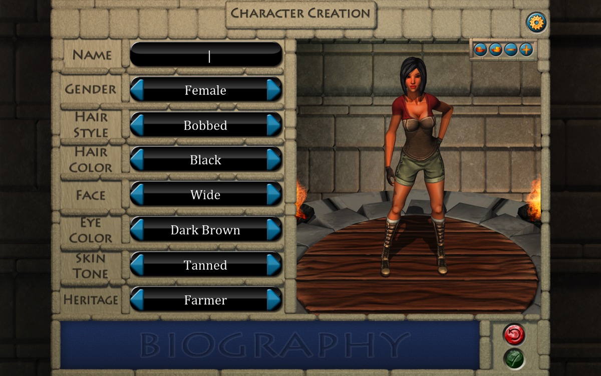 Au tout début du jeu, vous créez votre personnage. Vous choisissez votre profession parmi les 4 qui vous sont proposées. Vous indiquez le sexe que vous avez retenu et vous définissez aussi les traits physiques de votre héros ou héroïne. N’oubliez pas le nom.