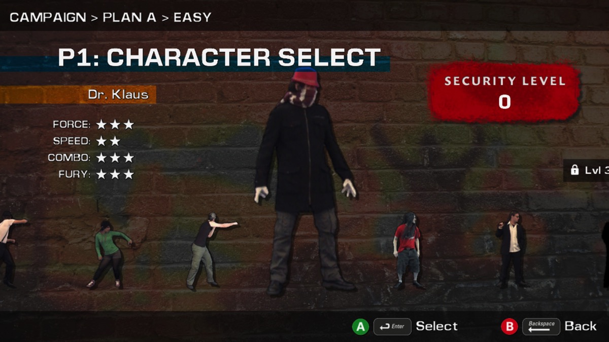 Après avoir testé chacun des personnages, j’ai joué avec celui que j’aimais le mieux et qui est pour moi celui qui arrive à foncer dans le tas et s’en sortir sans trop de dégâts.