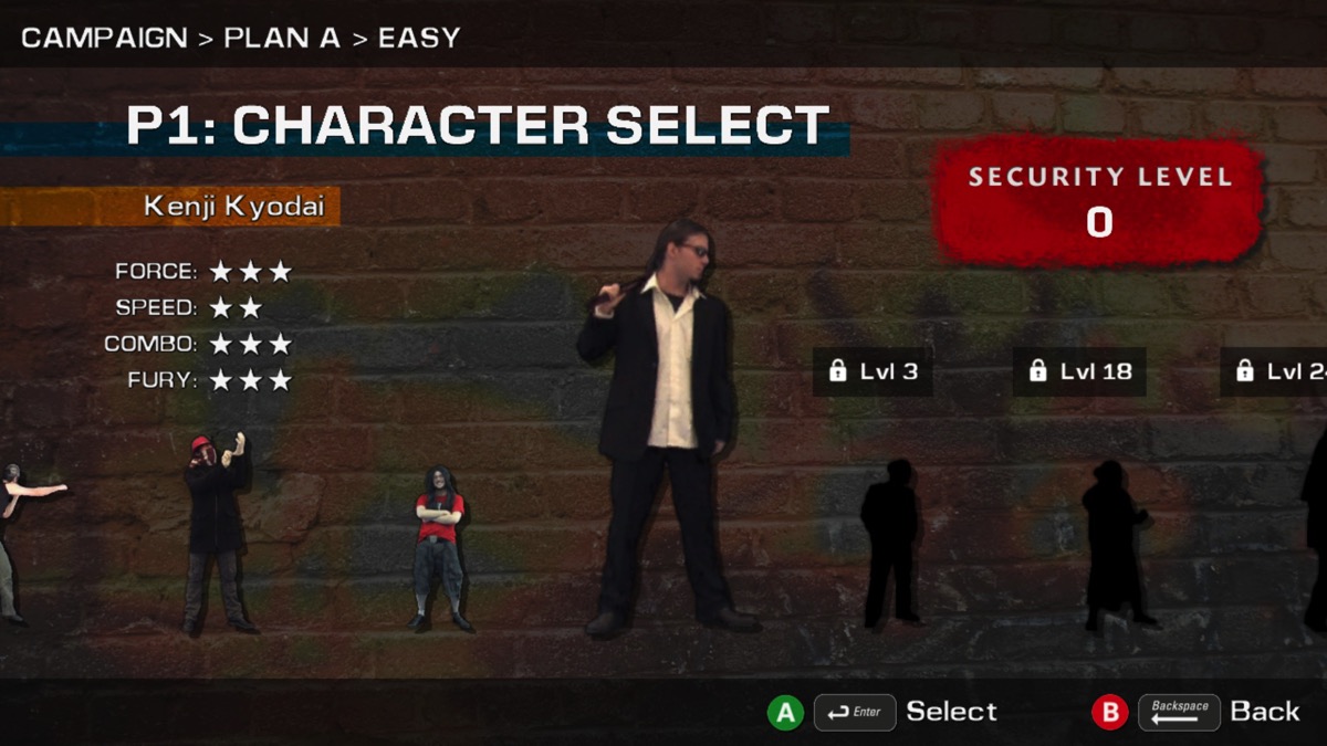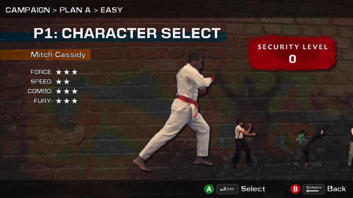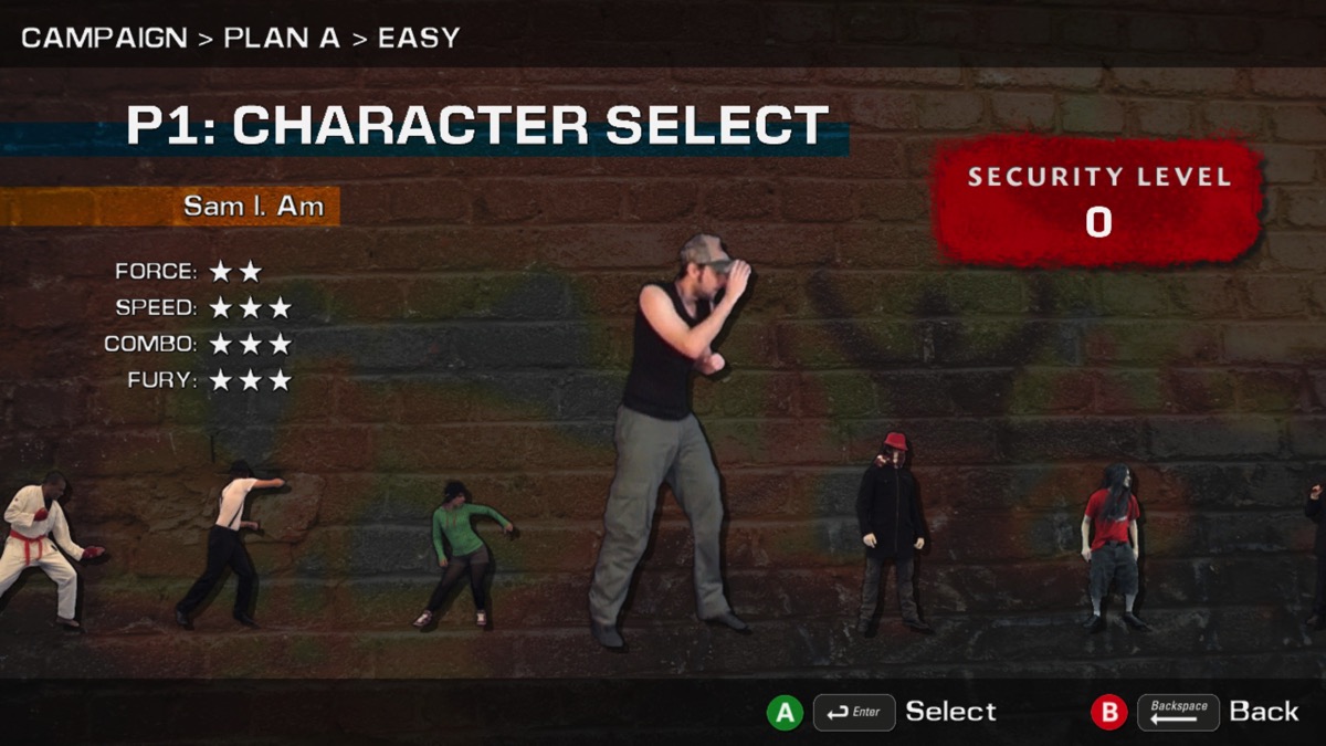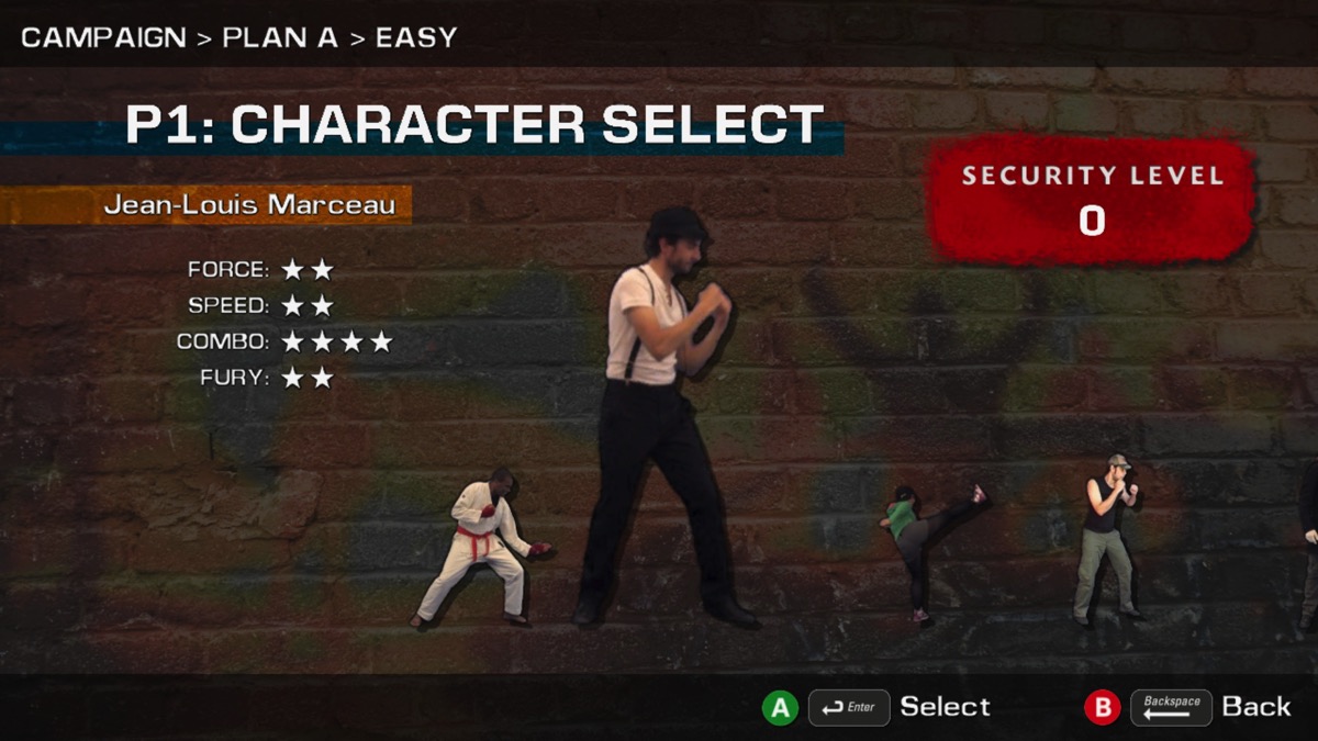 Au commencement du jeu, vous avez accès à 7 combattants. Chaque combattant a son propre style, ses propres expressions et ses propres phrases mais aussi ses propres forces et faiblesses. Tous les combattants du jeu, comme les ennemis d’ailleurs, sont des personnages réels. Je suppose que les mouvements des personnages ont été filmés puis ensuite reportés dans le jeu.