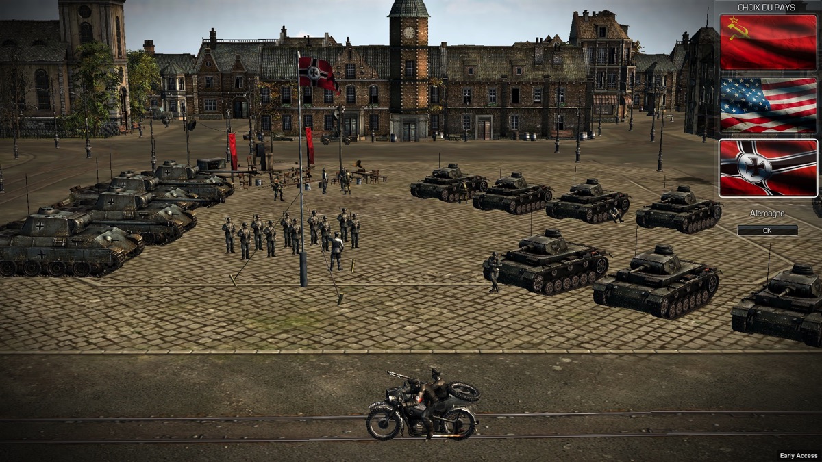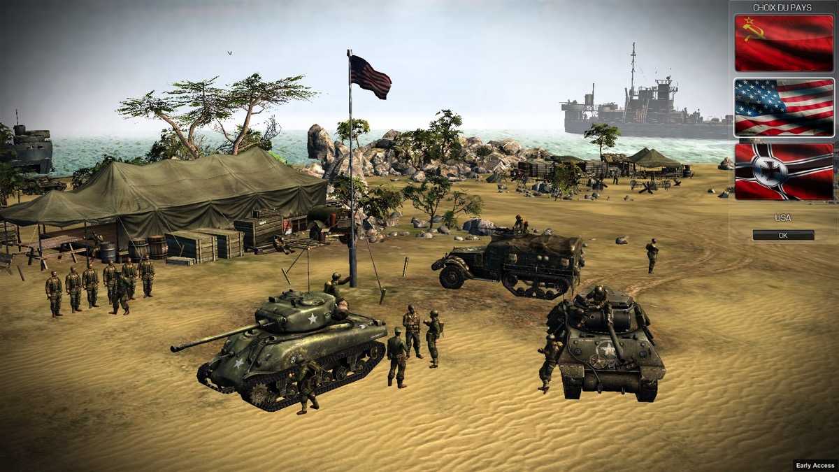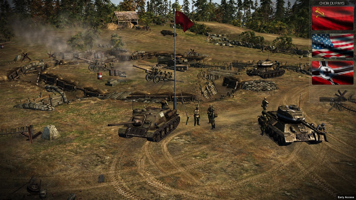 Pour le mode multijoueurs, je n’ai pas eu l’occasion de le tester (pour la raison ci-dessous) mais, à ce que j’ai pu voir, vous choisissez votre camp parmi les trois suivants : allemand, soviétique et américain.