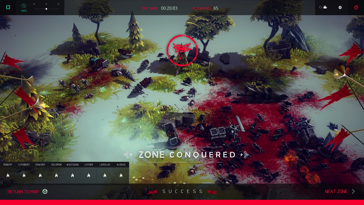 Tous ces différents niveaux correspondent à une région de l’île que vous êtes en train d’envahir. En accès anticipé, il y a juste l’île de Ipsilon et ses quinze niveaux à conquérir.