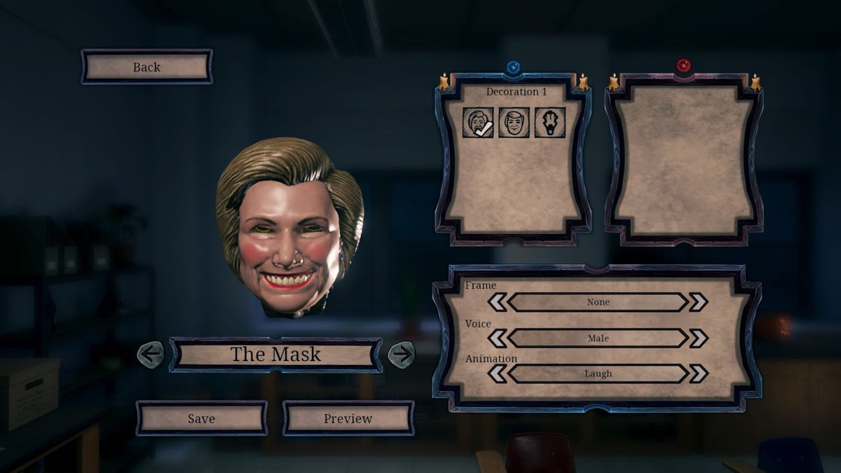 Vous avez plusieurs masques pour faire peur et vous avez aussi plusieurs personnalisations de masque. Il y a deux masques que j’aime bien, ce sont celui d’Hillary Clinton et celui de Donald Trump. Plus vous progressez dans le jeu, plus vous débloquez les masques et les personnalisations.