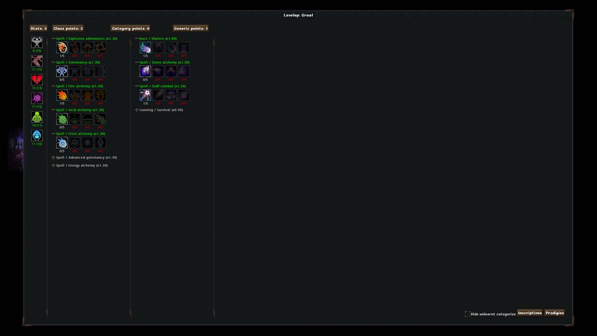 Au moment de la création de votre personnage, vous avez le choix entre 7 races (dont 3 sont à débloquer) et plusieurs sous-races et 10 classes (dont 5 sont à débloquer) avec de nombreuses sous-classes (33 au total). Par exemple, il y a la classe magicien qui comprends les sous-classes alchimiste, archimage et nécromancien. Je me demande s’ils vont rajouter par la suite l’élémentaliste, le sorcier, le chaman, l’enchanteur, l’invocateur, etc. Mais ce n’est pas tout, vous choisissez aussi le niveau de difficulté du jeu et comment vous voulez gérer votre mort (vies infinies, vies limitées ou une seule vie).