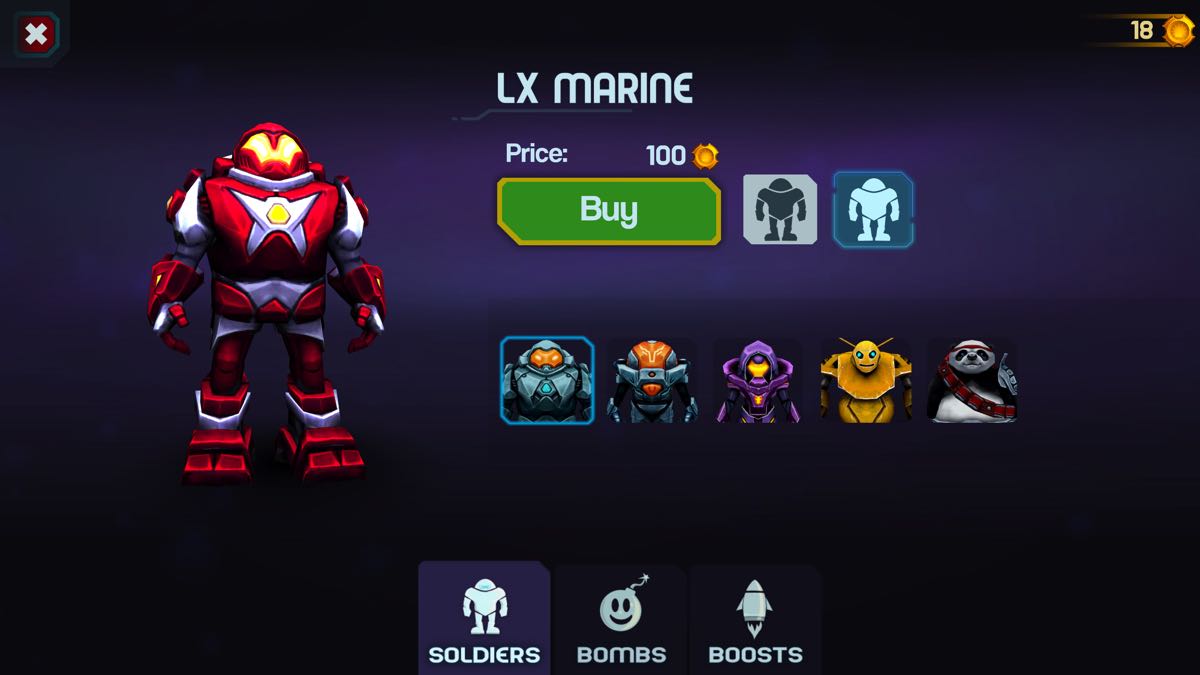 Avec les pièces d’or que vous collectez en jouant, vous pouvez aller à la boutique pour acheter des tenues pour votre personnage, différentes bombes et bonus. Par contre, je ne sais pas si la tenue change quelquechose dans les compétences de votre héros ou si c’est juste esthétique. C’est la même chose pour les bombes… effets et dégâts différents ou même chose !?