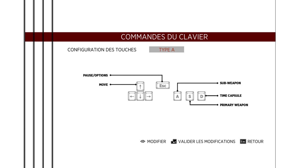 Votre avion se contrôle soit avec la manette (Steam, je suppose), soit avec la souris ou soit avec le clavier. Oui, ici, la souris et le clavier ne sont pas complémentaires mais deux moyens différents de jouer. Votre avion possède une arme de base (vous savez, celle qui est généralement appelé l’arme primaire) (appuyez sur S), une arme secondaire que vous devez utiliser avec parcimonie car vous êtes limité en munitions (et très pratique pour affronter des chefs) (A) et enfin la possibilité de ralentir le temps ce qui vous donne l’occasion de vous sortir de situations périlleuses ou de tirer X fois plus contre un ennemi puissant (D appuyé en continue tant que vous voulez utiliser cette compétence).