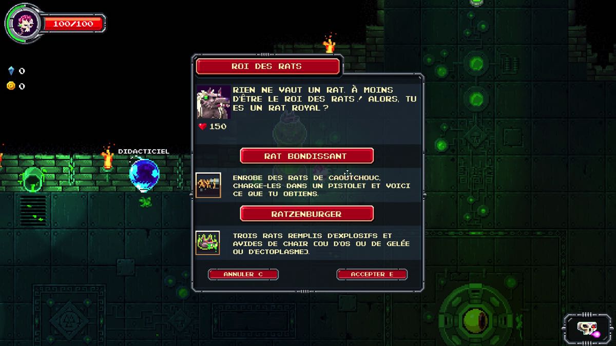 Il va vous donner, dans un premier temps, le moyen de vous défendre, puis, dans un second temps (voyant en vous un potentiel pour semer du désordre chez les autres démons) la possibilité de muter en d’autres choses… comme par exemple en un rat humanoïde pour commencer.