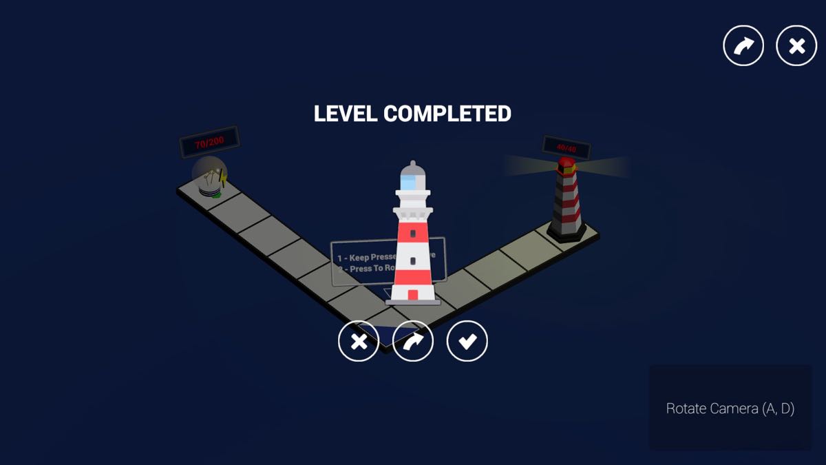 Quoi comme difficultés ? Et bien, il y en a beaucoup, je vais donc vous parler juste de la première et ça va être à vous de découvrir les autres en jouant à Light House Puzzle. La première difficulté, ce sont les tournant. L’électricité avance tout droit et si vous ne mettez pas une sorte de miroir dans le coin du tournant (et dans le bon sens), l’électricité va être perdue. C’est la difficulté la plus simple.